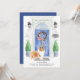 Mit unserer stilvollen Ankündigung kündigen Sie Ihre neue Adresse mit einem Rough Collie, einer blauen Eingangstür, einer Begrüßungstür, einem Schild mit Schiefer, Topiaries und einem blumengeschmückten Set auf grauem Ziegelboden an.