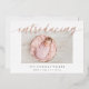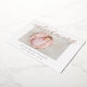 Moderne, elegante Geburtenankündigungen zeichnen Ihr bevorzugtes, horizontal oder landschaftsorientiertes neugeborenes Foto aus, das in der Rose als Schriftzeichen für Goldfolie "vorgestellt" wird. Der Name und die Geburtsdaten des Babys erscheinen unten. Fügen Sie der Rückseite sechs zusätzliche Fotos in einem Collage-Layout hinzu, oder löschen Sie, um leer verlassen.