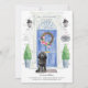 Mit unserer stilvollen Ankündigung kündigen Sie Ihre neue Adresse an: Schwarzes Cockapoo, blaue Haustür, Begrüßungstafel, Schiefer-Schild, Topiaries und ein blumengeschmücktes Set auf grauem Backstein.