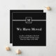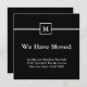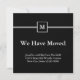 Diese bewegende Ankündigung kann mit Ihrem Monogramm, Ihrem Namen und Ihrer neuen Adresse angepasst werden. Oben ist ein Quadrat für Ihr Monogramm. Der Text ist weiß. Der Hintergrund ist schwarz.