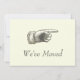 Ein cooles, altmodisches Vintages Zeigehandzeichen, das von einer antiken Buchseite aufgenommen wurde, macht dies zu einem einzigartigen und lustigen Weg, um zu verkünden, dass Sie sich bewegen. Fügen Sie Ihre neue Adresse der Textvorlage auf der Rückseite hinzu.