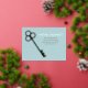Mit diesen klassischen und modernen, sich bewegenden Ankündigungen kündigen Sie Ihren Adresswechsel an und zeichnen sich durch eine wunderschöne Vektorgrafik eines Vintagen Skelettschlüssels aus.