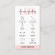 Stellen Sie sicher, dass Ihre Kunden wissen, wie sie ihre Lash-Erweiterungen mit einer personalisierten Lashes-Visitenkarte für Nachsorgeanwendungen betreuen können. Diese Pflegeanleitung für weibliche Wimpern-Erweiterungen enthält Pflegesymbole für jeden Schritt und einen modernen Script-Schriftart. Diese Beauty Bar Care Guide Karte in Weiß und Rosa ist die perfekte Ergänzung zu Ihrem lash salon Schreibwaren Design.