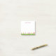 Tulip Illustration von Tulpen in Schatten von rosa und gelb im grünen Gras an der Baumwolle der Noten. Personalisieren Sie Ihren Namen oder Ihre Nachricht in tiefrosa lila Schriftart.