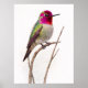 A delicate portrait of Anna’s Hummingbird perched on slender branches, featuring its vivid magenta crown and iridescent green feathers. A calm nature-inspired bird artwork with soft detail and elegant composition. Ai-assisted artwork.
