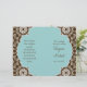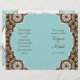 Ein wunderschönes und romantisches Hochzeitsprogramm für die Braut, das mit einer winzigen Touch der Tradition dem Zeitgenössischen nahebringt. Das weiße Damast-Muster hat ein modernes Spitzengefühl und das Viereck-Center-Design ist nicht im Zentrum und macht Spaß! Aqua blau, schokoladenbraun und weiß ist eine sehr schöne Farbkombination. Diese Einladung kann in beliebiger Farbkombination erstellt werden. Alles was wir brauchen, ist ein Farbmuster, und wir freuen uns, es für Sie Set, einfach per Email. PAPIEREMPFEHLUNG: Wenn Sie diese nicht professionell bewerten und in einer Druckerei gefaltet haben, empfehle ich die Auswahl des Papierwerts, der matt ist. Das Grundpapier ist außen sehr glänzend und kann an der Falzstelle mit dunklen Farben knacken.