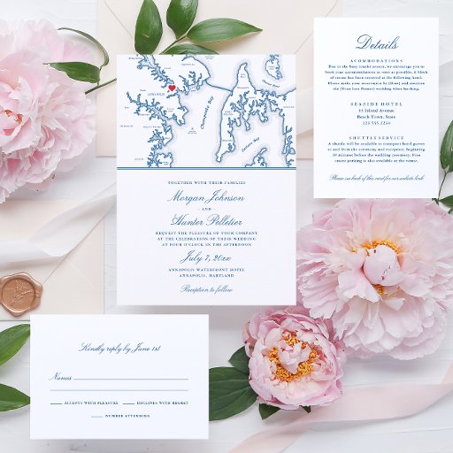 Annapolis Map Elegant Navy Hochzeit Tischnummer