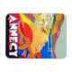 Annecy, Frau genießen am Strand mit Küste unter ihr und den Bergen. Vintage Travel Poster auf einem Magneten.