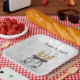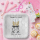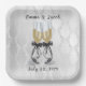 Champagnerflöten mit schwarzen Bögen auf elegantem weißem Damast-Hintergrund zum Party zum Hochzeitstag. Namen und Hochzeitstermin können bearbeitet werden.