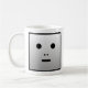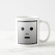 Ein einfacher, viereckiger, grauer Schattierter Roboter mit einem leeren Aussehen, hat eine Art niedliche Unschuld, hat noch nicht zu viele Zahlen geknackt. Das Design wird auf beiden Seiten der Tasse wiederholt.