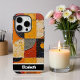 Diese fette Handy-Abdeckung zeigt einen stark strukturierten, impasto Ölgemälde-Stil mit einem Mosaik geometrischer Formen in einer lebhaften und kontrastreichen Palette von Orangen, Gelb, Rot, Dunkelbraunen und Grau. Das künstlerische, taktile Design fügt Ihrem Gerät einen modernen und farbenfrohen Flair hinzu. Ein schwarzes Bar am unteren Rand bietet Personalisierung mit einem Namen wie "Elizabeth"; wenn man keinen Namen will, kann man ihn und alle anderen Elemente, die man nicht mag, aus dem Designwerkzeug entfernen und ein wirklich maßgeschneidertes Smartphone-Accessoire erstellen.