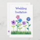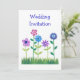 Eine schicke, moderne Einladung zur Hochzeit aus Braut und Bräutigam mit einer Reihe von rosa, blauen und lila Blume aus der handbemalten Papierkollektion von Judy Adamson. Vollständig und einfach anpassbar.