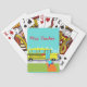 Hey! Warte auf mich! Diese individuell anpassbaren Karten für den Schulbus Cartoon Playing Cards werden Ihren Tag zu einem guten Start. Es gibt einen Cartoon, der von einem Kind zeichne, das eine rote, karierte Mittagsschachtel trägt, während er einen verrückten Spruch für den Schulbus macht. Das Kind trägt königsblaue Hosen und ein türkisfarbenes Shirt. Er läuft einen orangefarbenen, gepflasterten Bürgersteig hinunter. Der Bürgersteig ist von der Art von grünem Rasen umgeben, die nur in den Vorstädten zu finden sind. Es gibt auch einen weißen Zaun mit Picknicken. Auf der Straße sehen wir einen lebhaften, gelben Schulbus mit Aquafenster und Glastüren. Der Name auf der Seite des Busses ist anpassbar. Klicken Sie einfach auf das Symbol "Anpassen", um den vorhandenen Text durch Ihren eigenen zu ersetzen. Vergiss nicht, den Schulnamen im Bus zu ändern! Hinter dem Bus sehen wir einen Wasserhimmel und die Silhouetten von Zedernbäumen. Bestellen Sie es jetzt. Du will nicht, spät zu sein!