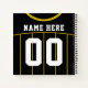 Dieses Design ist ein Fußball / Fußball Stil Jersey mit gelb / gold pinstripe und Rand, die Hintergrundfarbe kann geändert werden, klicken Sie einfach auf CUSTOMIZE. 8,5" x 8,5" Spiralfolien mit laminierten Covers, und eine Auswahl an Papier Stil, einschließlich Sketchbook, regiert, Hälfte regiert. Die Vorderseite und die Rückseite der Notebooks sind im Jersey-Stil gestaltet, sodass Sie Ihren eigenen Namen und Ihre eigene Nummer hinzufügen können. Verwenden Sie die Felder rechts neben dem Bild, um den Text zu ändern. Diese Notizbücher eignen sich hervorragend zum Skizzieren, Listenmachen, behaltend Rezept, zum behalt Ihrer Sportstatistiken und zum Verleihen von Schulgeschenken für Schüler. Einzigartige personalisierte, maßgeschneiderte Sportjersey-Geschenke für Sportfans und Spieler in Ihrem Leben!