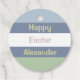 Horizontal pastellfarben, hellgrün und staubblau gestreiftes Muster und anpassbarer Text: Happy Oaster. Klicken Sie auf Bearbeiten, um den Text und den Namen nach Ihren Wünschen zu ändern.
