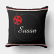 Dieses rote und schwarze Musterkissen ist niedlich mit ladybug-Akzent. Passen Sie mit Ihrem Namen oder anderen Text auf diesen Akzent werfen Kissen.