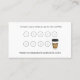 Mit der Chalkboard Loyalty Card des individuell gestaltbaren Coffee Shop Business Logos stärken Sie Ihre Kunden stilvoll und vielseitig und erhöhen so die Kundenbindung für Ihr Coffee Shop. Diese Treuekarte zeichnet sich durch ein charmantes Chalkboard-Design mit einem individuell anpassbaren Business-Logo aus und bietet eine visuell ansprechende und anpassbare Lösung, um Ihre treuen Kunden zu belohnen. Kaufen Sie 9 Kaffee und erhalten Sie die 10. Gratis-Treuekarte. Der Chalkboard-Hintergrund verleiht dem Café eine Touch rustikalen Charmes und eignet sich somit perfekt für die gemütliche und einladende Atmosphäre eines Coffee Shops. Fügen Sie auch Ihre Website auf der Rückseite ein.
