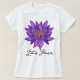Der T - Shirt verfügt über eine fett lila Lotus-Blume mit gelben Mustern in der Mitte. Unter der Blume steht Text, der derzeit in einem dekorativen kursiven Schriftart "Lotus Blume" lautet. Dieser Text ist anpassbar, d.h. er kann in jede beliebige Formulierung, Phrase oder Namen Ihrer Wahl geändert werden, um das Design zu personalisieren.