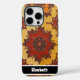 Dieses aufwändige Handy-Cover zeigt ein wunderschön strukturiertes, im Mandala-Stil geprägtes Blumenmuster in warmen Orange-, Gelb- und Rottönen, hervorgehoben mit dunkelbraunen Akzenten. Das verzierte, taktile Design fügt Ihrem Gerät einen raffinierten, künstlerischen Flair hinzu. Ein schwarzes Bar am unteren Rand bietet Personalisierung mit einem Namen wie "Elizabeth"; wenn man keinen Namen will, kann man ihn und alle anderen Elemente, die man nicht mag, aus dem Designwerkzeug entfernen und ein wirklich maßgeschneidertes Smartphone-Accessoire erstellen.