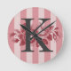 Anpassbare Monogramm Rosa Streifen Cabbage-Rose Runde Wanduhr