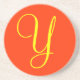 Anpassbare personalisierte Y-Untersetzer. Hintergrundfarbe, Text und Schriftart können angepasst werden.