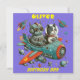 Anpassbare Retro Roboter und Katze in Space Flat Card.