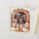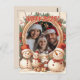 Große Postkarte mit einem Winterthema des neuen Jahres der Schneemänner. Es gibt einen runden Rahmen, den Sie mit Ihrem eigenen Foto und Ihrem eigenen Text füllen können! Diese Postkarte ist ideal, um das neue Jahr zu feiern!