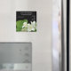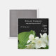 Ein hübscher "Save the Date" Kühlschrankmagnet für Sie, um sich zu personalisieren, mit einem Hauch von duftendem Mock Orange Blossom, auf schwarzem Hintergrund, von einem Foto von Judy Adamson