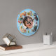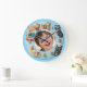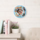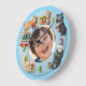 Diese entzückende und lebendige anpassbare Wanduhr ist die perfekte Ergänzung für jedes Kinderzimmer oder Spielzimmer. Die Uhr verfügt über einen hellblauen runden Rahmen, der mit charmanten, lustigen 3D-Cartoonkatzen verziert ist, die jede Stunde darstellen. Von einer schlafenden Katze, die auf dem Mond zusammengerollt ist für 7, bis hin zu einer spielenden Katze mit einem Wollknäuel für 12 und einer Kochkatze, die stolz einen Fisch für 4 hält, machen diese fröhlichen Charaktere das Lernen, die Uhrzeit zu lesen, zum Vergnügen! Die großen, farbenfrohen Zahlen (1-12) sind leicht zu lesen. Am besten ist, dass die Mitte der Uhr mit einem Foto Ihres Kindes und seinem Namen personalisiert werden kann (wie "Andy" im Beispiel). Diese einzigartige Uhr dient sowohl als funktionale Dekoration als