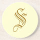 Anpassbarer personalisierter Untersetzer. Hintergrundfarbe, Text und Schriftart können angepasst werden.