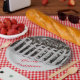 Anpassbarer Schnee auf einem Zaun mit Text Pappteller