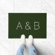 Anpassen, personalisieren des Alphabets in der ersten Monogramm Doormat-weiße Buchstaben, dunkelgrüner Hintergrund