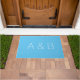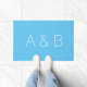 Anpassen, personalisieren des Alphabets in der ersten Monogramm Doormat-weiße Buchstaben, hellblauer Hintergrund