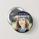 Eleganter Abschluss-Fest Button mit einem Absolventen-Mortarboard, ein Foto Ihres Sohnes oder Ihrer Tochter, das Sprichwort "Cheers to the Graduate", ihren Namen, Studienort und das Klassenjahr.