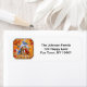 Ein Blauvogel, eine blaue Jay, eine Kicherfülle, ein Nacktschuh und ein Kardinal treffen sich zum Herbstfest auf einem einfarbigen, orangefarbenen Hintergrund. Kunstwerk aus einem Originalgemälde des Künstlers Crista S. Forest.