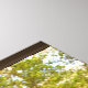 Gelbe Blumen, grünes Gras und Bäume. Schöne Natur außerhalb eines alten Fensters. Fotografie.