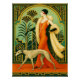 Dieses Poster ist eine sehr raffinierte Deko-Dame, die ihren Windhund zu einem Spaziergang mitnimmt. Mit einem wirklich schönen Deko-Hintergrund ist das ein wirklich schönes Art Deko Poster, das für Ihre Wand gerahmt sein könnte.