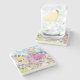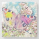 Anstrich eines rosa Schmetterlings auf farbigen Bl Steinuntersetzer