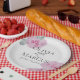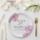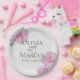 Hochzeitspapier-Party-Teller | Pinkfarbene, hellgrüne Rose-Blätter auf einem Hintergrund von Imitaten eggshell-Reißapier-Textur - Eine Kombination aus Drehkalligrafie und minimalistischem, zeitgenössischem Textlayout macht es zu einer trendigen Hochzeitssuite. Design erstellt für TheBarefootBride™ durch © WhimsicalArtwork™. Das ist Teil einer Sammlung von Hochzeitsartikeln mit passendem Hochzeitszubehör, Babydusche und anderen Veranstaltungsartikeln. Kontaktieren Sie uns, wenn Sie Hilfe benötigen.