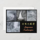 Eine Collage von vier Tinten bemalten Postkarten von japanischen Landschaften.