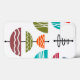 Dieses Gehäuse hat ein modernes Design aus halben Kreisen mit weißen Linien und einer Linie durch sie, die sie wie eine Antenne aussehen lassen.
