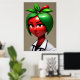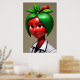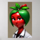 Ein Portrait einer niedlichen Apfelfrau mit grünen Haaren, die weiße Kleidung trägt. Das ist eine künstlerische KI.