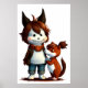 Als Portrait eines coolen Cartoon Anthropomorphischer Hund und sein Haustier trägt der Hund ein weißes Trikot, eine braune Jacke und eine blaue Hose. Das ist eine künstlerische KI.