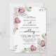 Romantische und elegante Hochzeitseinladung mit hellbordeauxfarbenen Anthurien, grünen und rosa Blätter und grüner Aquarellseite. Matching-Elemente sind ebenfalls verfügbar.