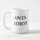 Ermüdet von der Dummheit? Diese Tasse sagt der Welt, wie Sie sich fühlen. Groß für jedermann, das Idioten regelmäßig beschäftigen muss, sagt diese Tasse in schlichtem, Schwarzweiss, "Anti-Idiot".