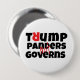 Dieser Knopf zeigt die Anti-Trump-Botschaft "Trump Panders, Not Governs". Tragen Sie es auf Kleidung oder Accessoires, um Ihren politischen Widerstand gegen Donald Trump zum Ausdruck zu bringen. Es ist für politische Ereignisse oder tägliche Abnutzung geeignet, um Ihre Meinung zu zeigen.