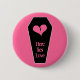 Ein schwarzer Sarg mit einem gürtelrosa gebrochenen Herz darauf, auf einem heißen rosa Button auf dem Knopf.