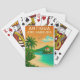 Ein buntes altes Reiseplakat aus Antigua und Barbuda, das auf Spielkarten umgelegt wurde! Ein unglaublicher tropischer Strand!