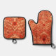 Indisches Textildesign in Orangetönen - auf diesem Set des Oven Mitt & Pot Holders wird ein antikes Bild gedruckt. Es zeigt stilisierte Blume und die Herzform. Die Illustration, die ursprünglich aus einem antiken Buch stammt, wurde von Alma Wad bearbeitet und auf verschiedene Gegenstände angewendet. Es ist ein ideales Geschenk für Oma. Höflichkeit des Internet Archives Buchbilder: "Decorative Textiles", Junter, 1918.