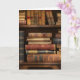 Antiquitätenbücher befinden sich in einer Bibliothek, wahrscheinlich in einer hübschen Bibliothek mit altem Charme. Die Sonne strömt im Fenster. Eine perfekte Karte für antike Liebhaber und Leser.